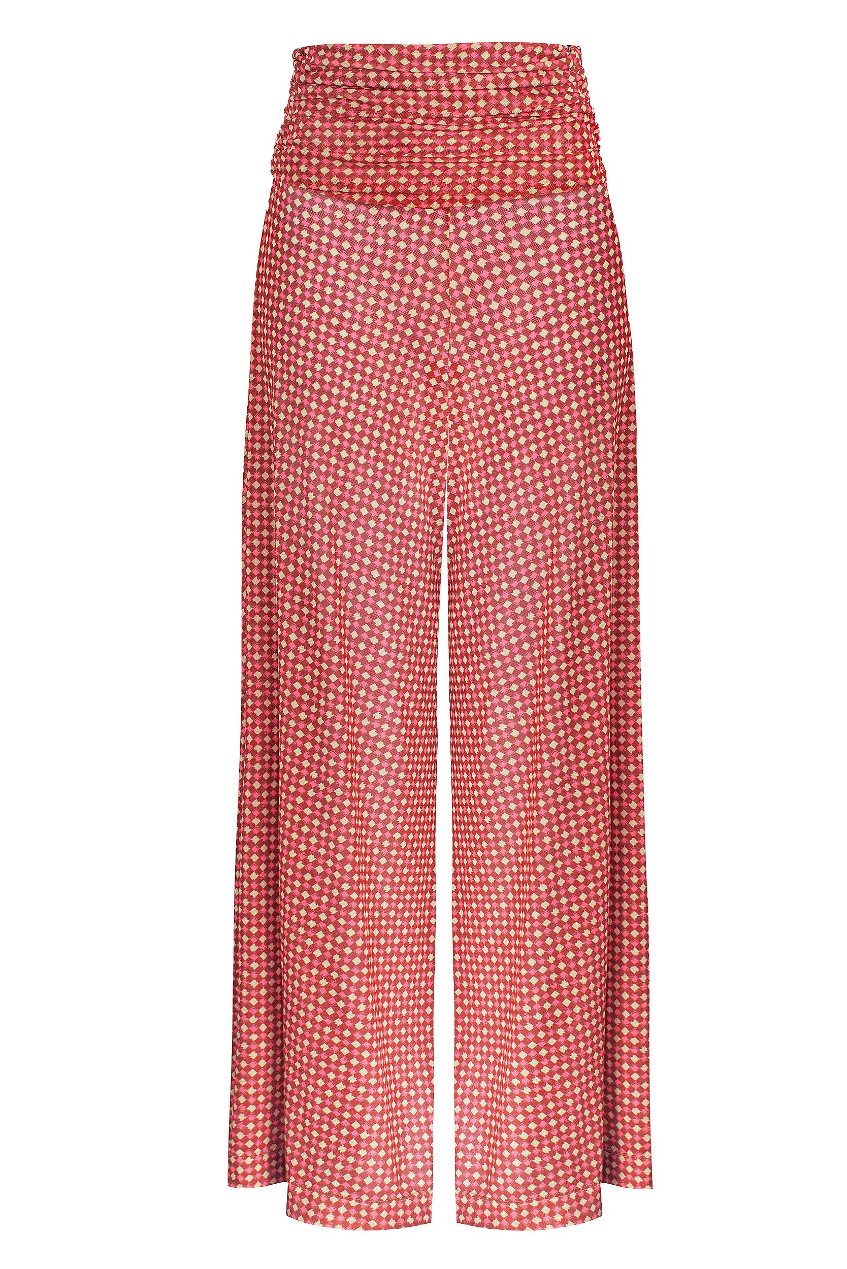 Calça estampada, com modelagem pantalona e cós dobrável. Confeccionado em tule com leve transparência, macio e com rápida secagem. Composto por poliéster com elastano.