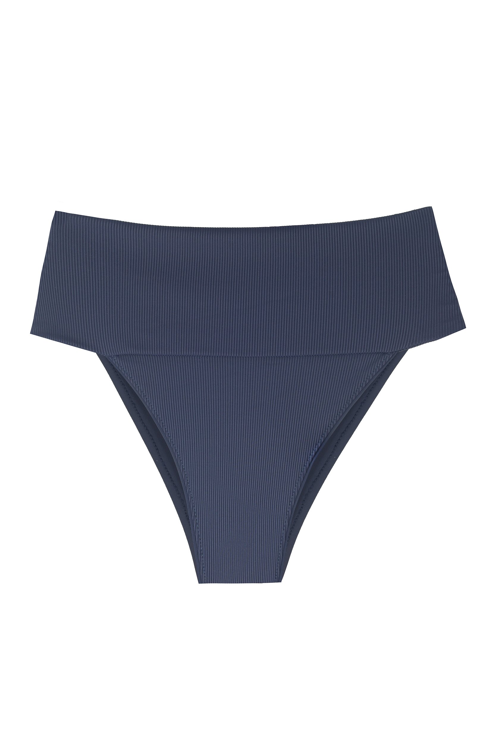 Calcinha com modelagem média com cós largo sem elástico, que pode ser usada com a cintura alta ou dobrada. Confeccionada em tecido com textura listrada, composto por poliamida e elastano.