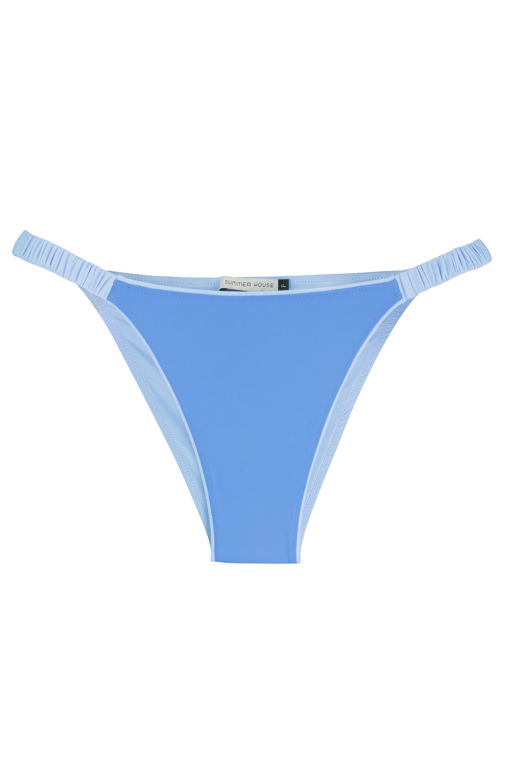 Calcinha bicolor com vivo. Possui cós fixo com lateral estreita e detalhe de tecido franzido. Confeccionada em tecido macio e confortável, de rápida secagem, composto por poliamida e elastano.