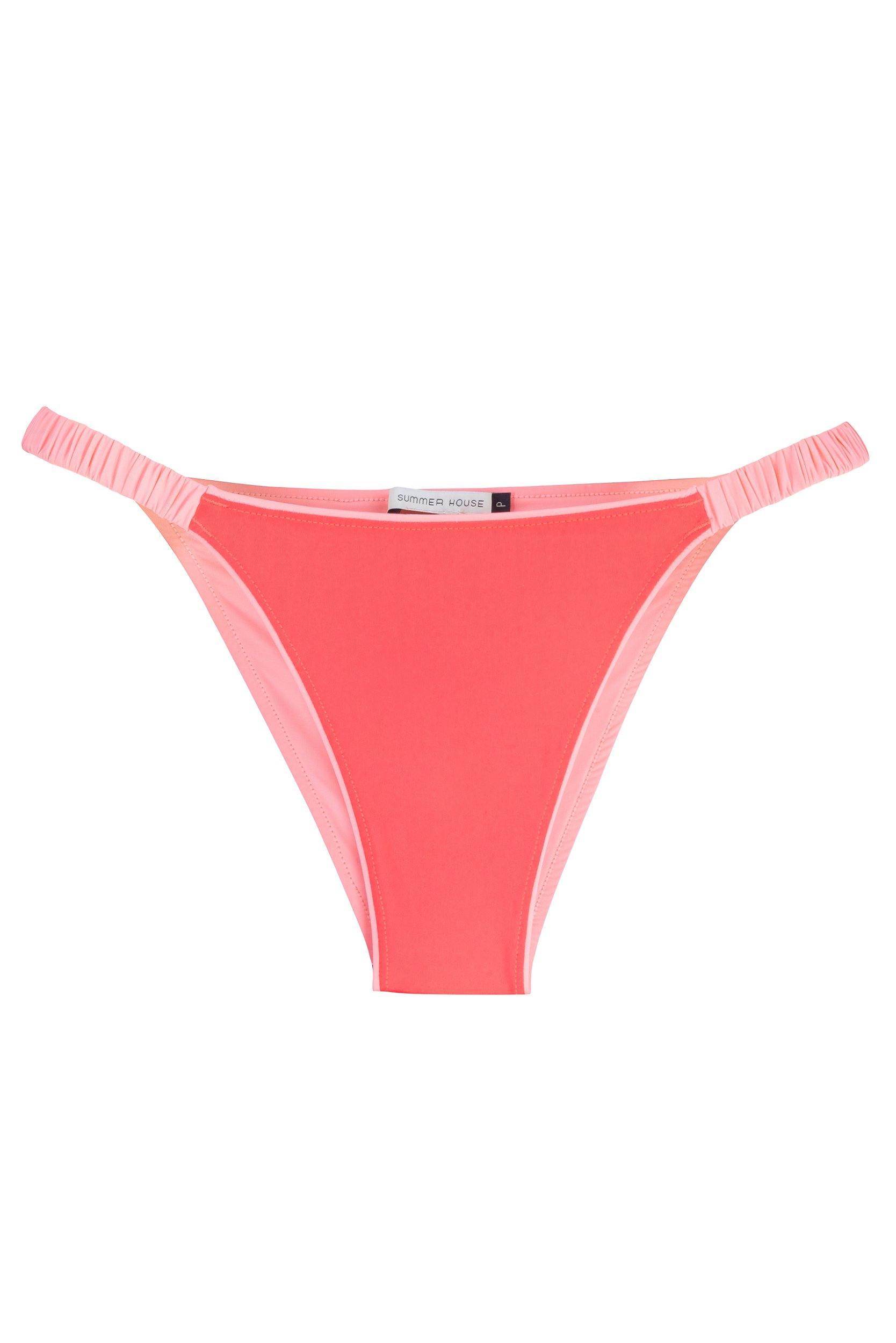 Calcinha bicolor com vivo. Possui cós fixo com lateral estreita e detalhe de tecido franzido. Confeccionada em tecido macio e confortável, de rápida secagem, composto por poliamida e elastano.