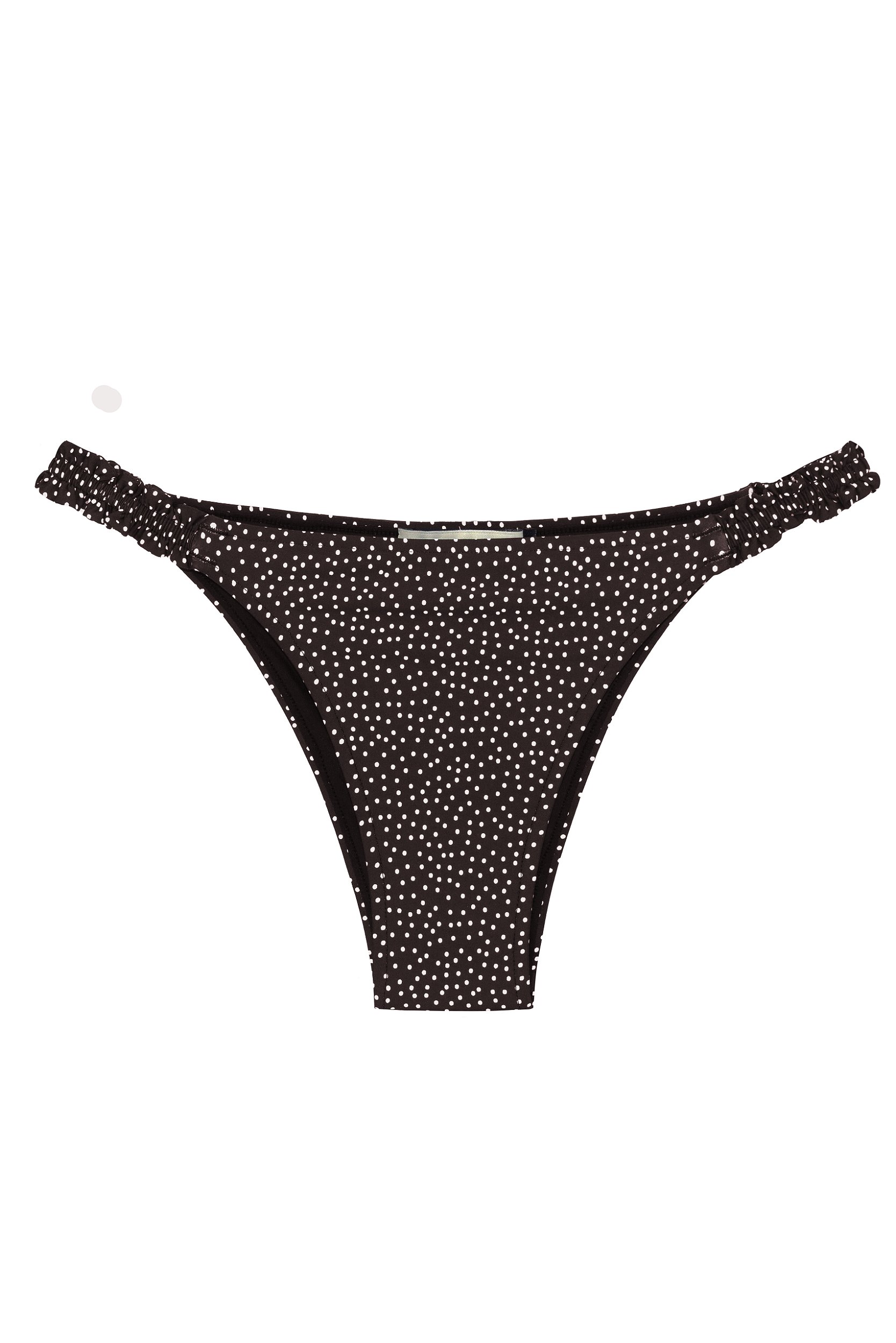 Calcinha estampada com laterais estreitas e sem ajuste. Detalhe especial de frufru nas laterais. Confeccionado em tecido macio e confortável, de rápida secagem, composto por poliamida e elastano. Possui forro duplo.