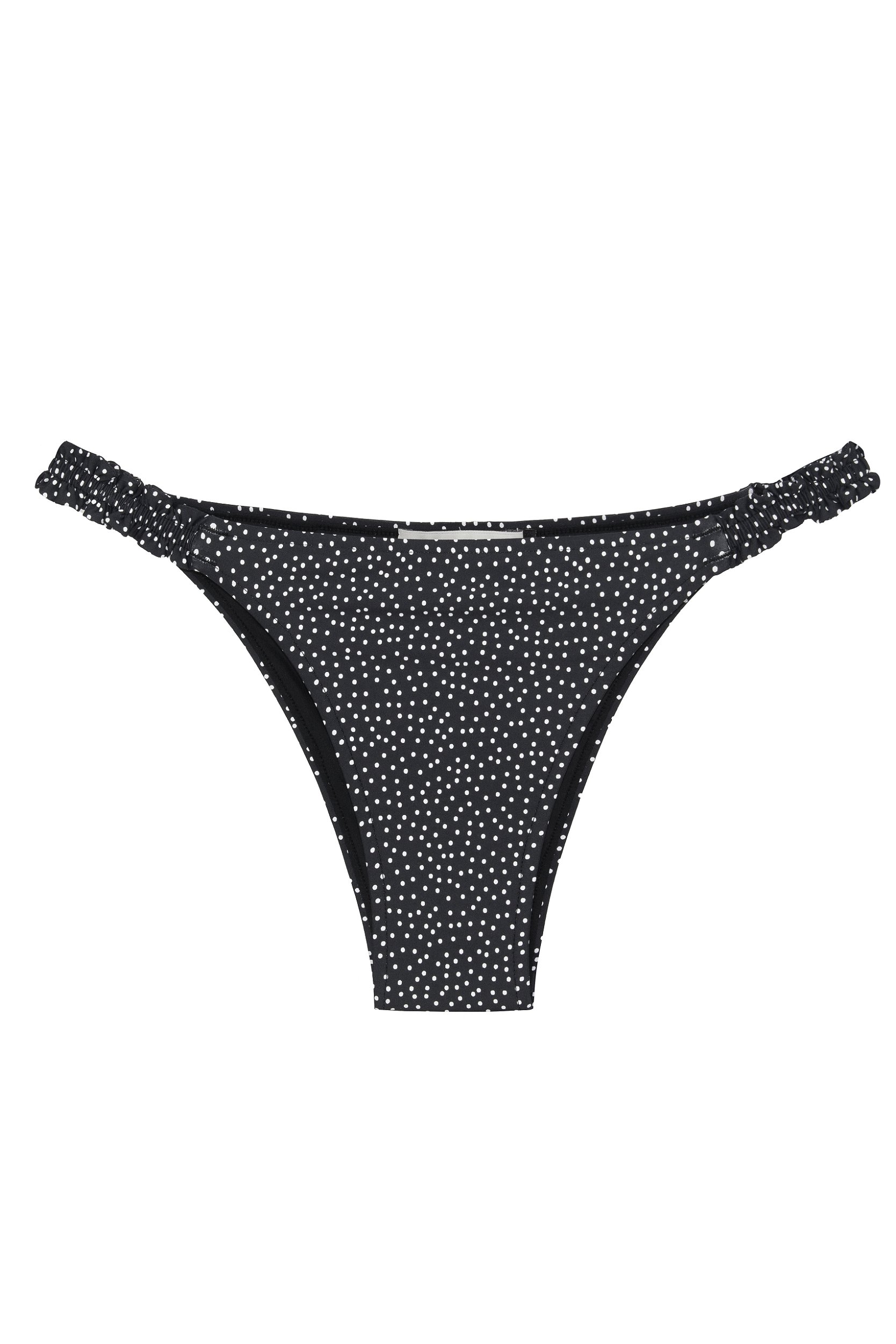 Calcinha estampada com laterais estreitas e sem ajuste. Detalhe especial de frufru nas laterais. Confeccionado em tecido macio e confortável, de rápida secagem, composto por poliamida e elastano. Possui forro duplo.