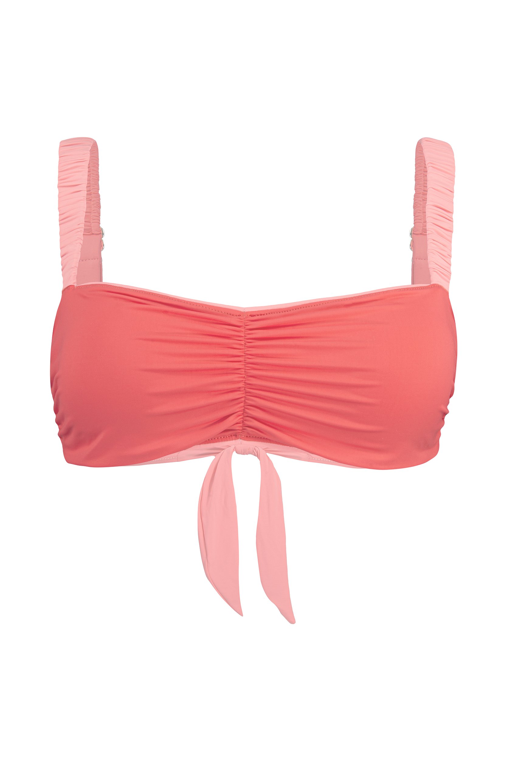 Top com modelagem bustiê bicolor e com vivo. Alças retas reguláveis com detalhe de tecido franzido. Ajuste das costas por laço. Possui bojo removível. Confeccionada em tecido macio e confortável, de rápida secagem, composto por poliamida e elastano.