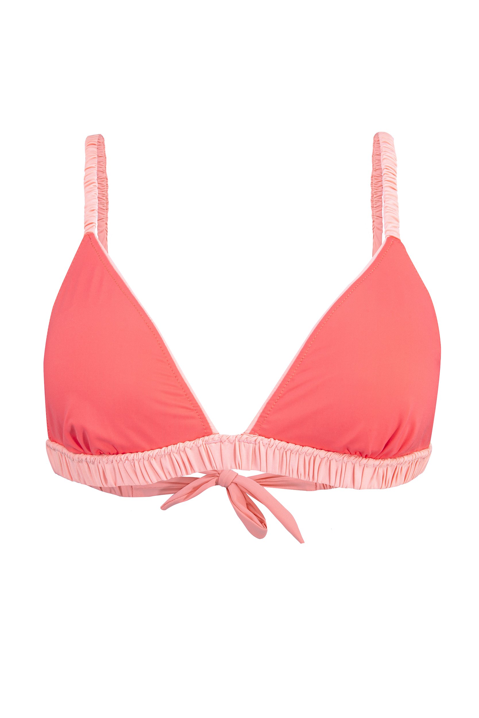 Top cortininha bicolor com vivo. Possui modelagem fixa e alças retas e reguláveis com detalhe de tecido franzido. Cós com tecido franzido e amarração nas costas. Possui bojo removível. Confeccionada em tecido macio e confortável, de rápida secagem, composto por poliamida e elastano.
