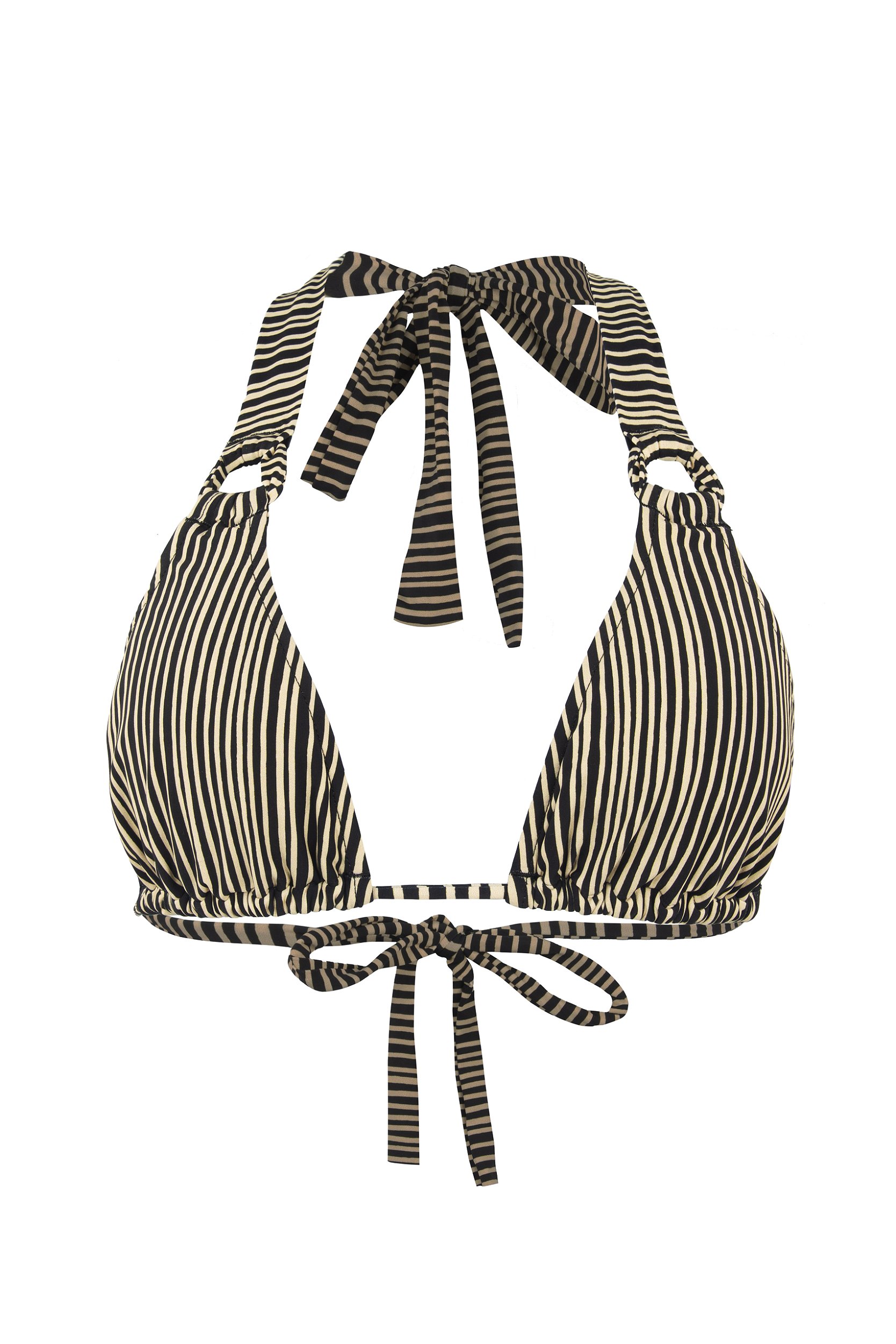 Top cortininha estampado, com detalhe de elo nas alças. Possui forro duplo e bojo removível. Confeccionado em tecido macio e confortável, de rápida secagem, composto por poliamida e elastano.