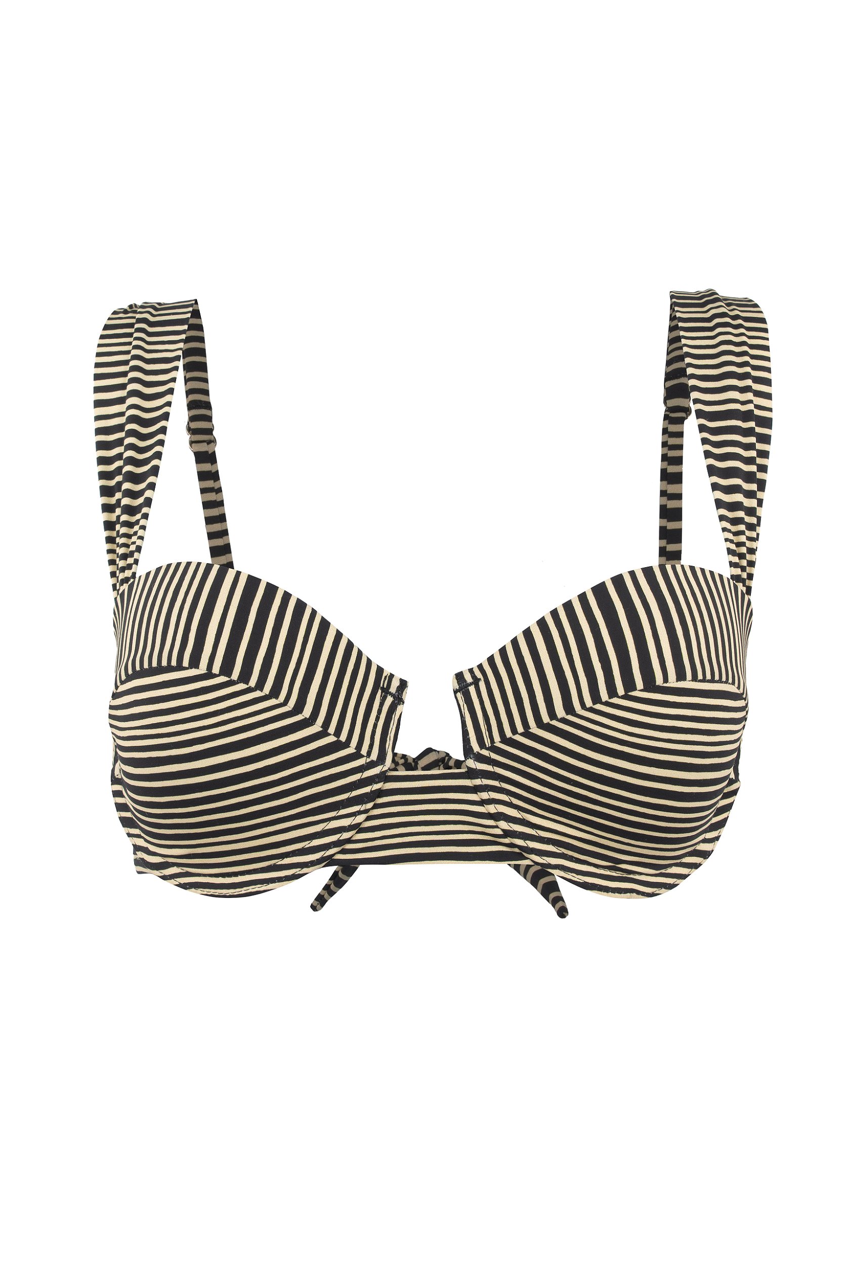 Top meia-taça estampado com bojo e aro. Alças franzidas e reguláveis. Ajuste por amarração nas costas. Confeccionada em tecido macio e confortável, de rápida secagem, composto por poliamida e elastano.
