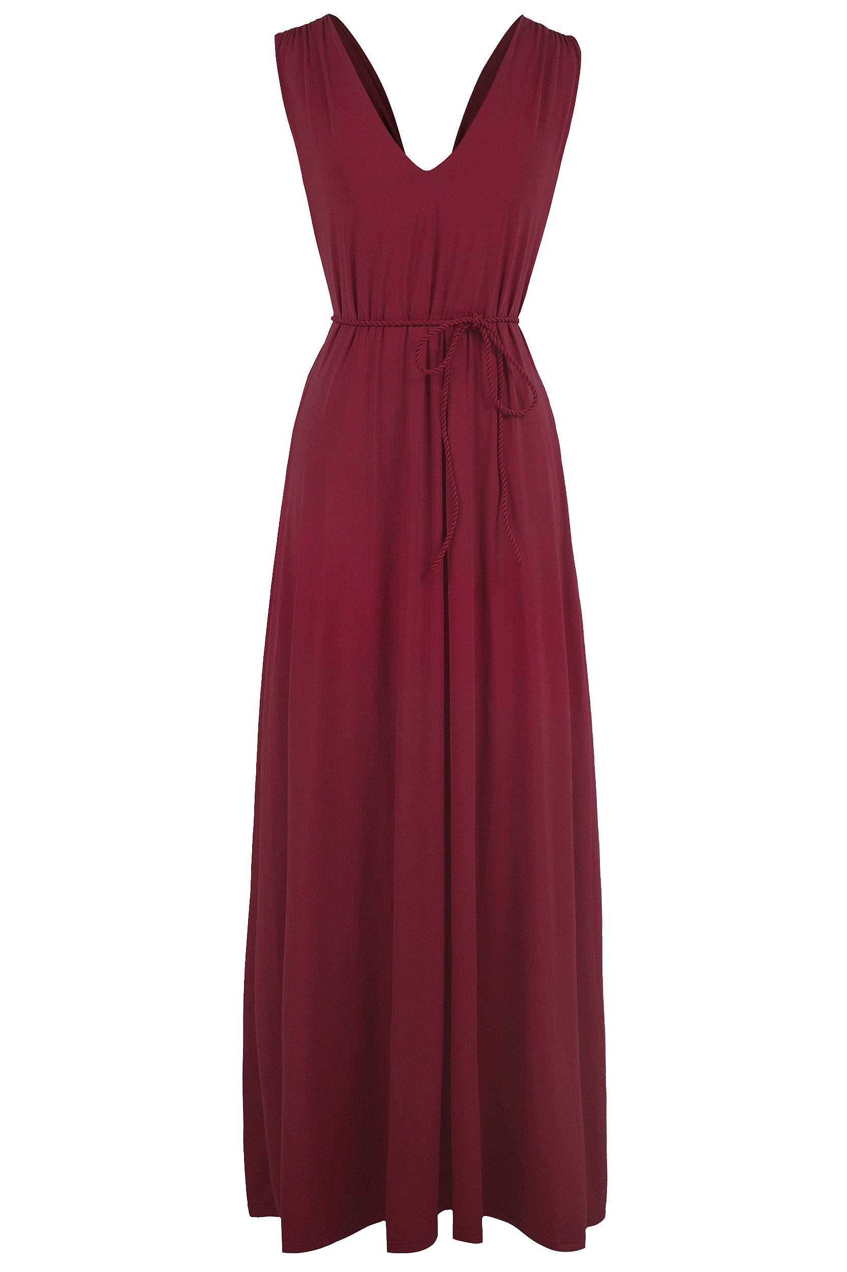 Vestido longo com decote V e frente única com alças com amarração no pescoço. Forro com modelagem de vestido curto do mesmo tecido. Confeccionado em tecido de rápida secagem macio, confortável e geladinho, composto por poliamida e elastano. Não amassa.
