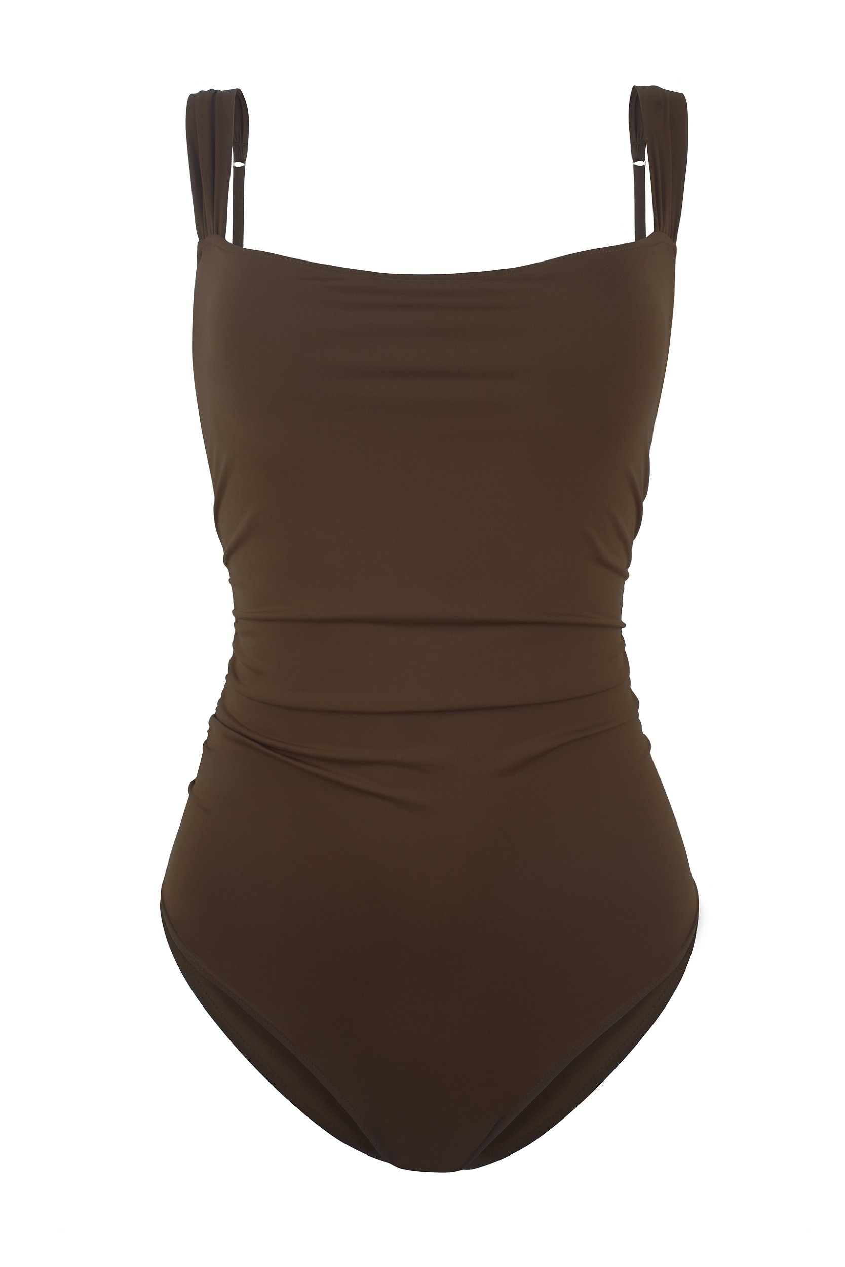 Maiô com decote reto e alças franzidas e reguláveis. Possui leve franzido nas laterais e bojo removível. Confeccionado em tecido macio e confortável, de rápida secagem, composto por poliamida e elastano. Possui forro duplo.